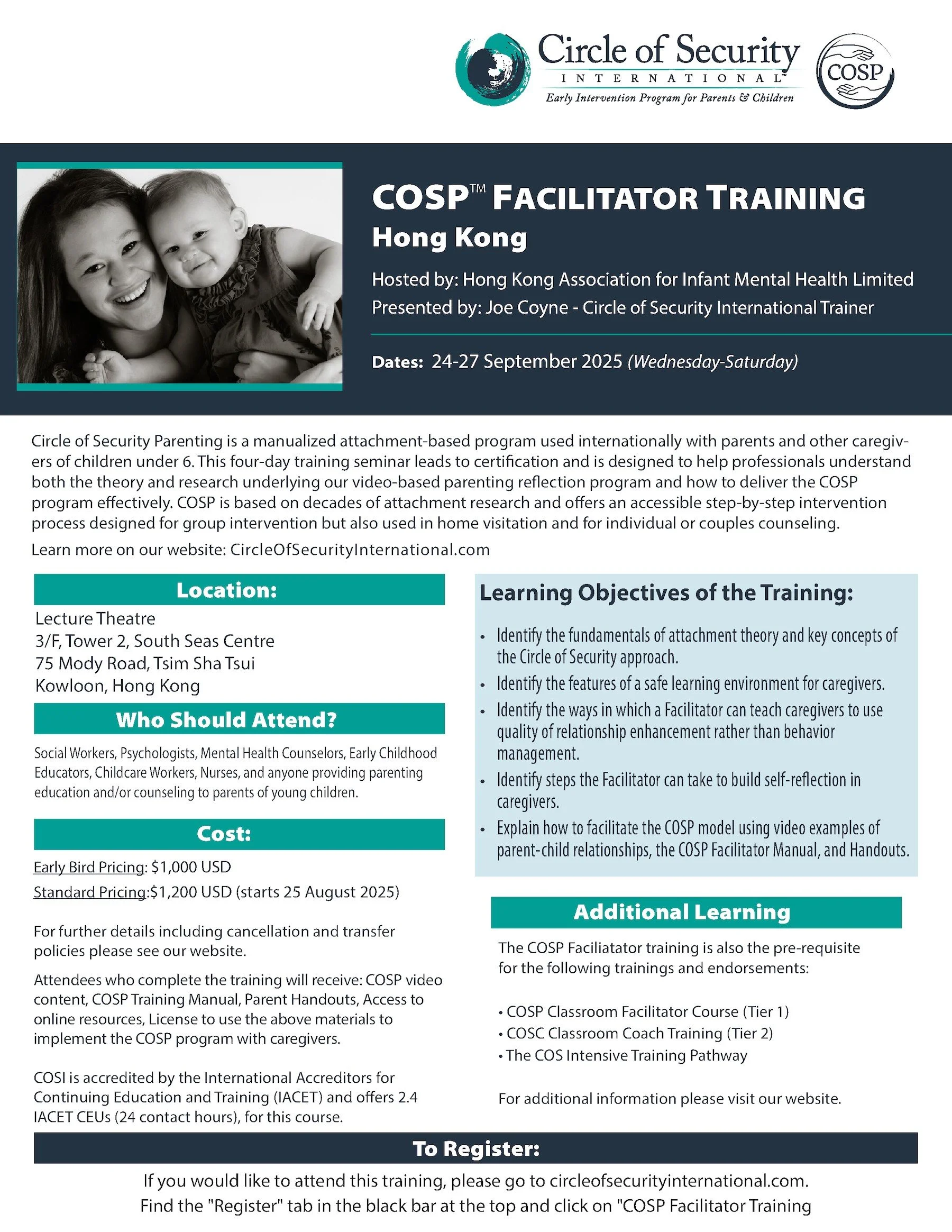 COSP Facilitator Training Hong Kong 24 to 27 Sep 2025